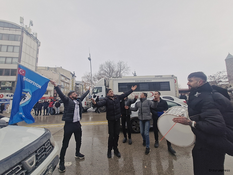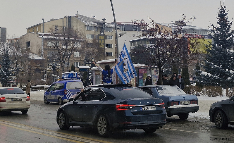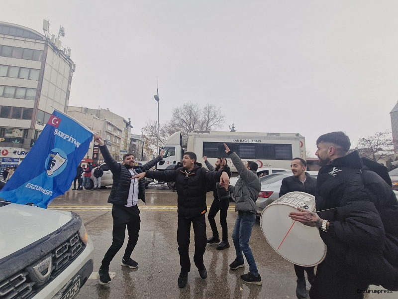 Araç konvoyları şehir merkezinde uzun kuyruklar oluştururken, otomobillerden yükselen tezahüratlar Erzurum'a damga vurdu. Korna sesleri, bayraklarla süslenen araçlar ve coşkulu kalabalık, Erzurum’un futbol tutkusunu bir kez daha gözler önüne serdi.