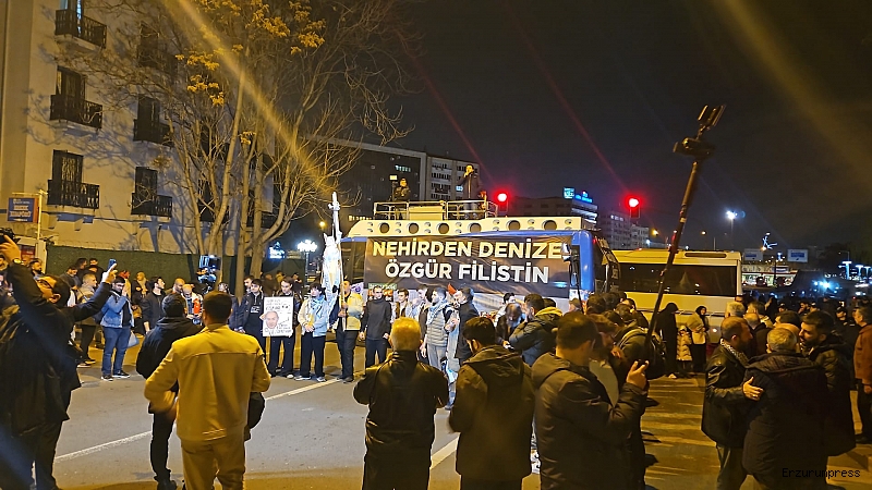 Ellerinde Filistin bayrakları taşıyan kalabalık, buradan yürüyüşe geçerek Sıhhiye Meydanı’na kadar sloganlar eşliğinde ilerledi. Yürüyüş boyunca sık sık “Kahrolsun İsrail”, “Filistin halkı yalnız değildir”, “Zulme sessiz kalma” ve “Mescid-i Aksa onurumuzdur” sloganları atıldı.