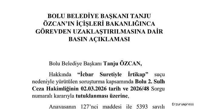 Bolu Cumhuriyet Başsavcılığı’nın yürüttüğü soruşturma kapsamında 28 Şubat’ta Bolu Belediyesi’ne operasyon düzenlenmiş, Özcan ile birlikte belediye yöneticileri ve bazı vakıf yetkilileri gözaltına alınmıştı. Savcılıktaki ifade işlemlerinin ardından Özcan ve Süleyman Can tutuklama talebiyle sulh ceza hakimliğine sevk edildi.