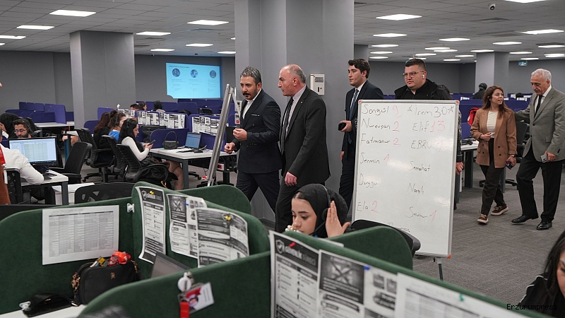 TOBB Yönetim Kurulu Üyesi ve ETSO Yönetim Kurulu Başkanı Saim Özakalın ile İŞKUR Erzurum İl Müdürü Abdulkadir Mutlu, beraberlerindeki heyetle birlikte çağrı merkezini ziyaret ederek yetkililerden bilgi aldı. ETSO'nun istihdam odaklı adımlarının somut bir çıktısı olan NİYEP programı çerçevesinde Erzurum'a kazandırılan bu yatırımın, şehrin iş gücü potansiyelini değerlendirme noktasında üstlendiği rol masaya yatırıldı. Görüşmelerde, 650 kişinin aktif olarak çalıştığı merkezin yeni alımlarla birlikte 1000 kişilik önemli bir istihdam kapısına dönüşeceği vurgulandı.