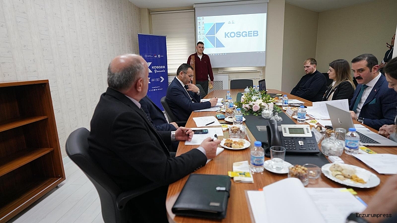 Erzurum Valisi Aydın Baruş başkanlığında ve KOSGEB Erzurum Müdürlüğü ev sahipliğinde yapılan toplantıda, imalat sanayi ile yazılım sektörlerinde faaliyet gösteren işletmelerin projeleri masaya yatırıldı. TOBB Yönetim Kurulu Üyesi ve ETSO Yönetim Kurulu Başkanı Saim Özakalın'ın yanı sıra KOSGEB İşletme Destekleri Dairesi Başkanı Ceyda Gazel, KOSGEB Erzurum İl Müdürü Lütfullah Aktaş, Erzurum Sanayi ve Teknoloji İl Müdürü Ender Cihantimür ve KUDAKA Genel Sekreteri Oktay Güven'in de katıldığı buluşmada, birinci aşama kurul değerlendirmesini başarıyla tamamlayan projeler ele alındı.