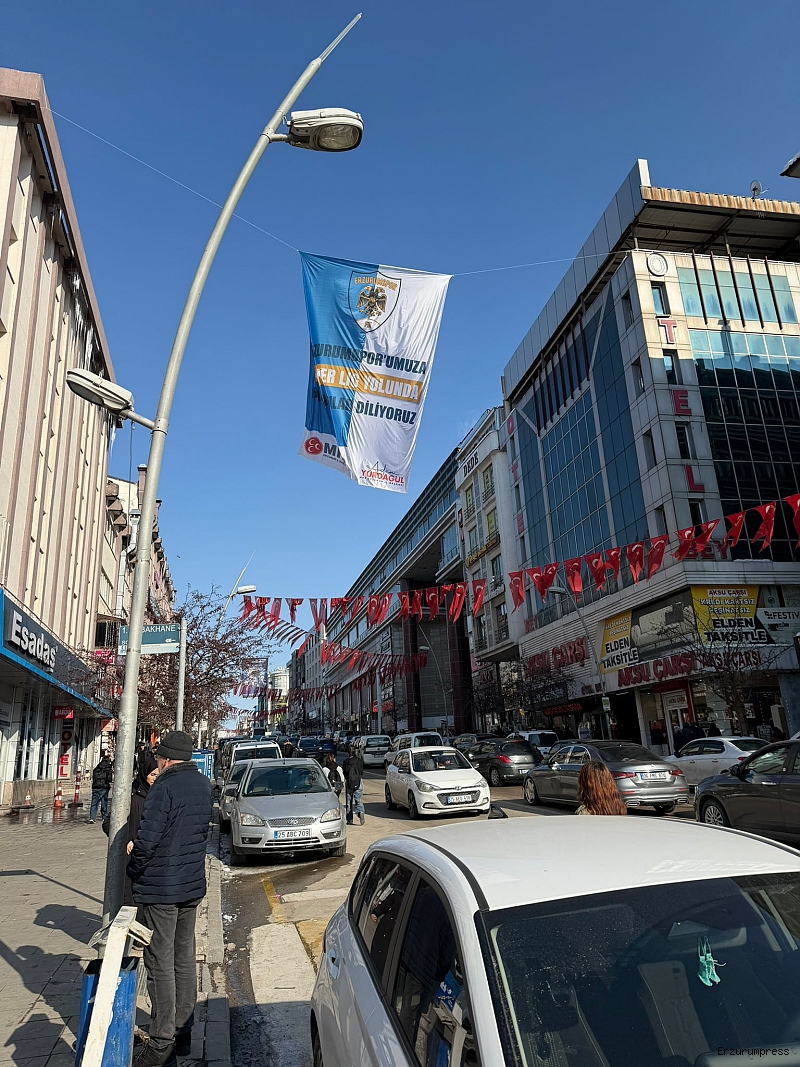 Trendyol 1. Lig’de şampiyonluk mücadelesi veren Erzurumspor’a moral vermek amacıyla EGC tarafından başlatılan bayrak kampanyası şehirde geniş destek bulmaya devam ediyor. Kampanya kapsamında kentin işlek noktalarına mavi-beyaz bayraklar asılırken, siyasi partiler ve sivil toplum kuruluşları da destek vermeye başladı.
