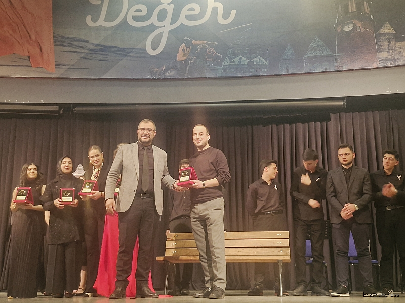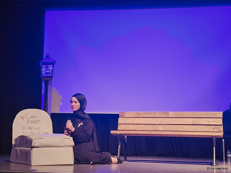 Gecenin en dikkat çeken ve hafızalara kazınan anlarından biri ise “Sol Yanım Acıyor Anne” şiirinin sahne performansı oldu. Genç bir kız öğrenci, şiiri sıradan bir okumanın ötesine taşıyarak etkileyici bir sahne kurgusuyla izleyici karşısına çıktı. Üzerinde “Canım Annem” yazılı mezar maketiyle sahneye çıkan öğrenci, şiiri adeta bir mezar başında annesine sesleniyormuş gibi içten ve derin bir duyguyla seslendirdi. Salonda büyük bir sessizlik hâkim olurken, birçok izleyici gözyaşlarına hakim olamadı. Performansın sonunda salonu dolduran davetliler genç öğrenciyi ayakta alkışladı.