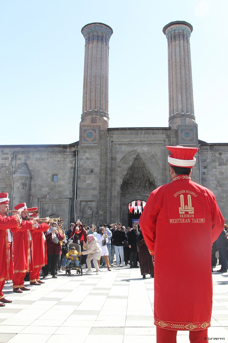 Erzurum Çifte Minareli Medrese ev sahipliğinde düzenlenen 50. Turizm Haftası etkinlikleri, renkli görüntülere sahne oldu. Program kapsamında halk oyunları ekibi ve mehter takımının gösterileri izleyicilerden büyük beğeni toplarken, müzik dinletisiyle etkinlikler zenginleştirildi.