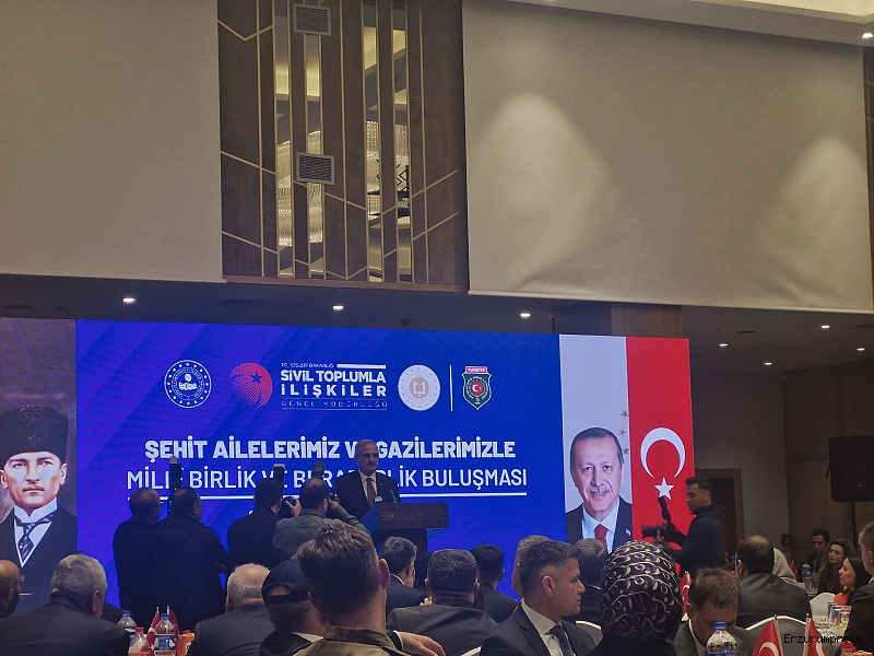 Erzurum’da, “Şehit Ailelerimiz ve Gazilerimizle Milli Birlik ve Beraberlik Buluşması” programı düzenlendi. Kent merkezindeki bir otelde gerçekleştirilen programa İçişleri Bakan Yardımcısı Münir Karaloğlu, Erzurum Valisi Mustafa Çiftçi, Büyükşehir Belediye Başkanı Mehmet Sekmen, İl Emniyet Müdürü Onur Karaburun, gaziler ve şehit aileleri katıldı.